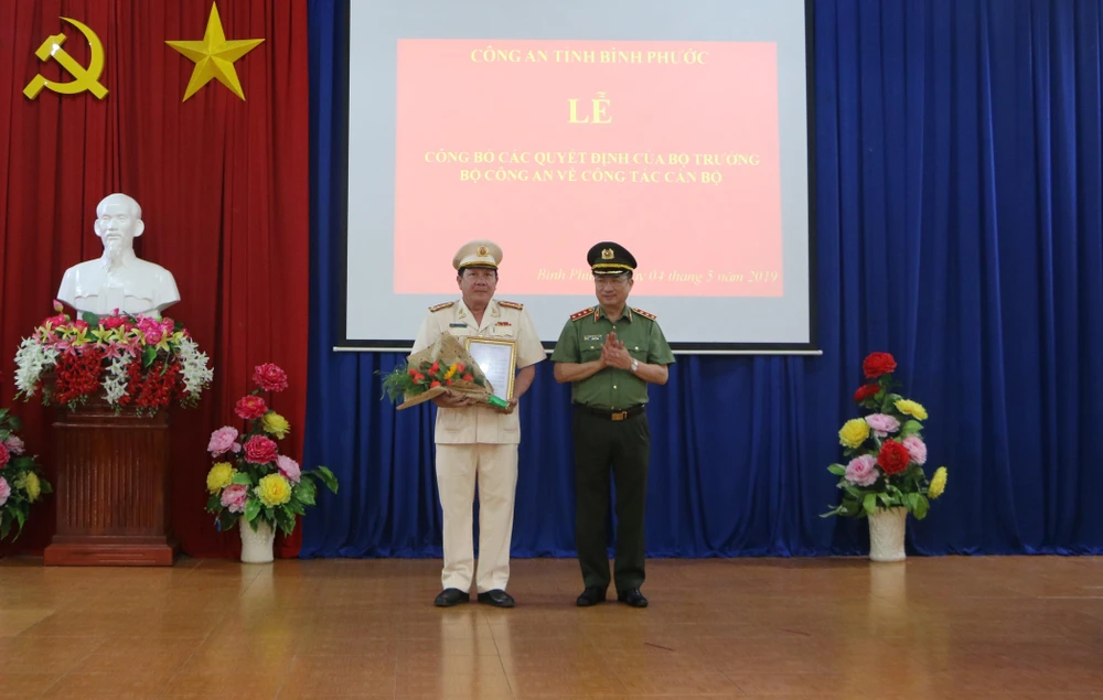 Tại buổi lễ, Thượng tướng, Thứ trưởng Bộ công an Nguyễn Văn Thành đã trao quyết định của Bộ trưởng Bộ Công an về việc điều động Đại tá Trần Thắng Phúc, Giám đốc Công an tỉnh Bình Phước thôi giữ chức vụ Giám đốc Công an tỉnh để về nhận công tác và giữ chức vụ Phó cục trưởng Cục An ninh nội địa (Bộ Công an) kể từ ngày 25-4-2019.