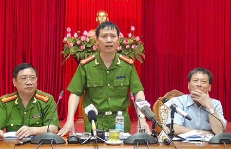 Đại tá Dương Văn Giáp, trưởng phòng Cảnh sát hình sự Công an TP Hà Nội, thông báo về vụ khống chế con tin. Ảnh: NG.DÂN