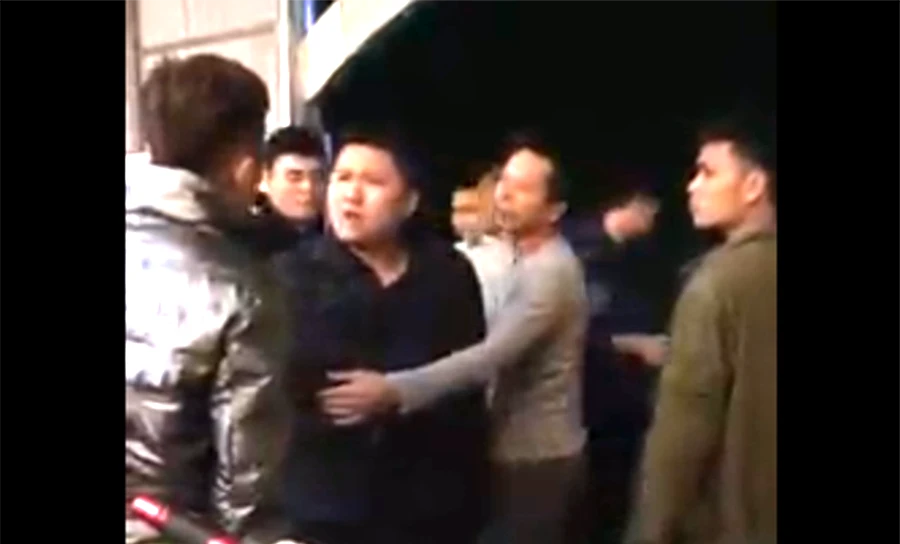 Nhóm người chửi bới liên tục xô xát với anh Luân. Ảnh: Cắt ra từ clip