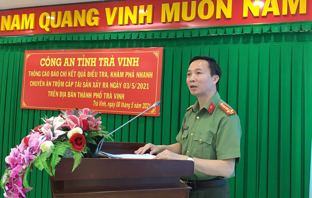 Ngày 8-5, Công an tỉnh Trà Vinh họp báo thông kết quả điều tra, khám phá nhanh chuyên án trộm cắp tài sản xảy ra trên địa bàn ngày 3-5.