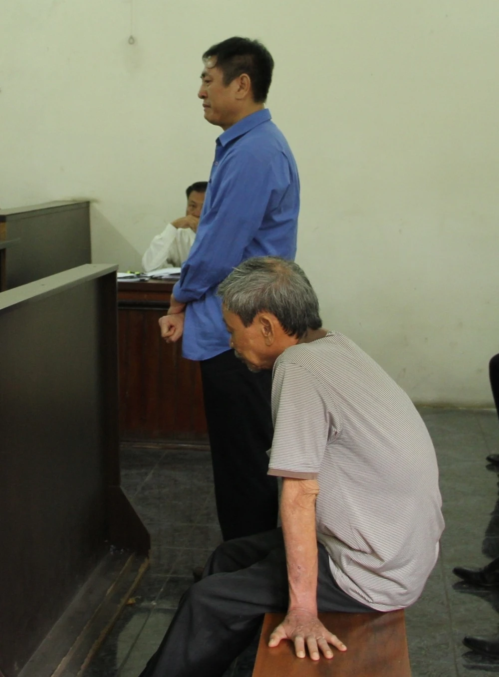 Bị cáo Kiều (đứng) và bị cáo Dũng (được cho ngồi vì lý do sức khỏe).
