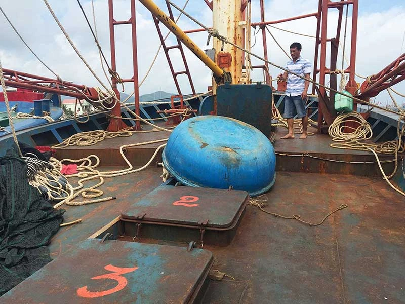 Một tàu vỏ thép của ngư dân Bình Định do Công ty Đại Nguyên Dương đóng bị rỉ sét trầm trọng. Ảnh: TL