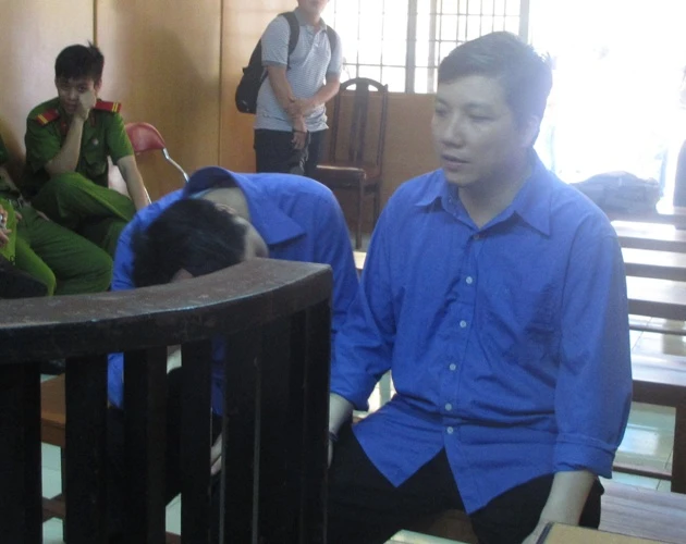 Nhân - Tân (từ trái qua phải) lúc tòa nghị án.