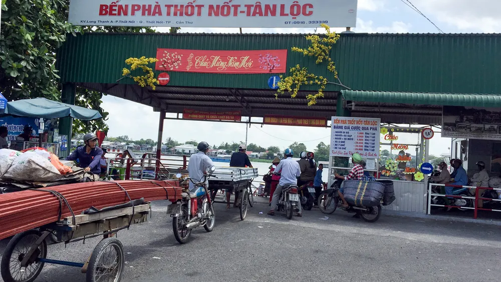Một trong năm bến phà từ Thốt Nốt đi cù lao Tân Lộc (ảnh chụp lúc còn hoạt động bình thường). Ảnh: CHÂU ANH