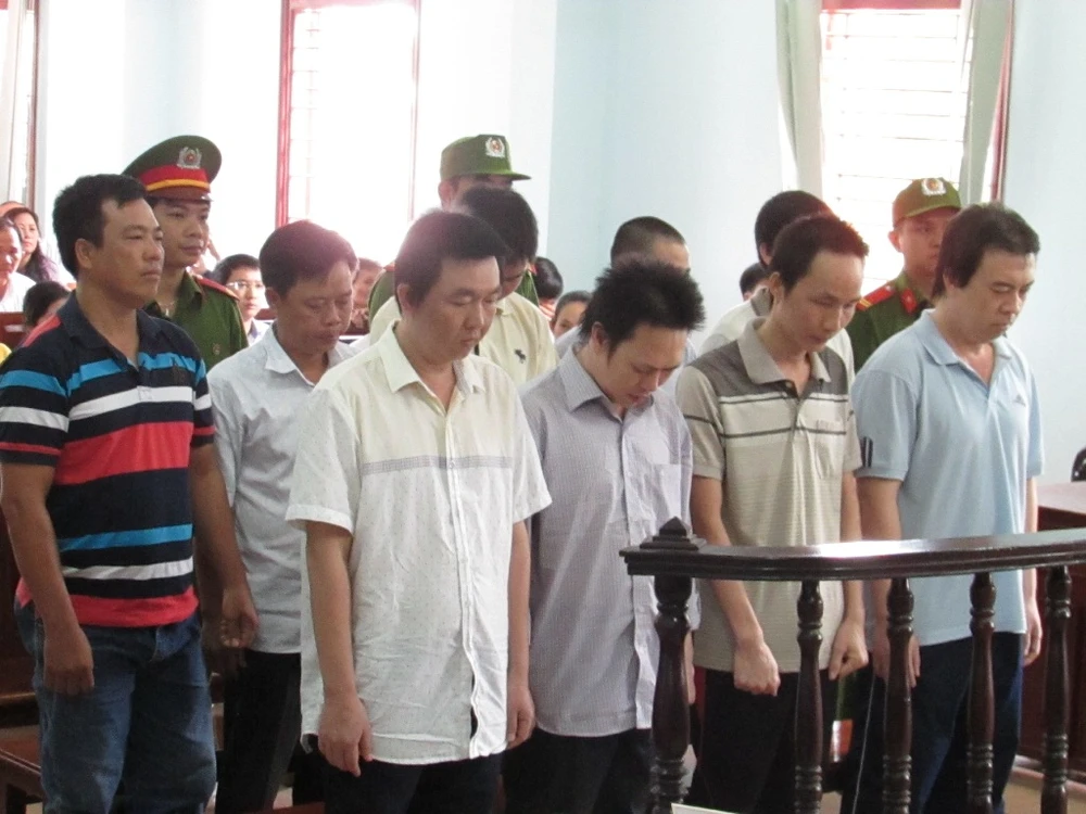 Nguyên bảy cán bộ thanh tra giao thông TP Cần Thơ cùng hai bị cáo khác nghe tòa phúc thẩm tuyên án ngày 20-10-2017. Ảnh: NN