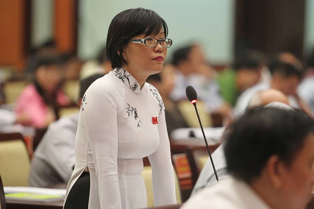 Đại biểu Nguyễn Thị Tố Trâm chất vấn. Ảnh: HOÀNG GIANG