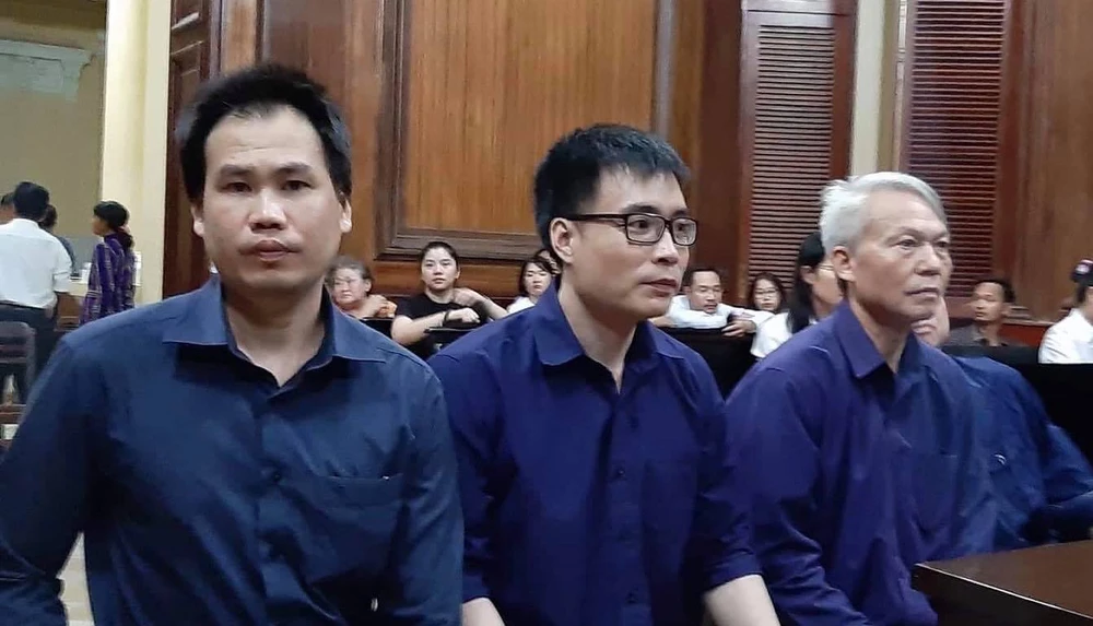 Ba bị cáo cựu cán bộ ngân hàng hầu tòa. Ảnh: HOÀNG YẾN