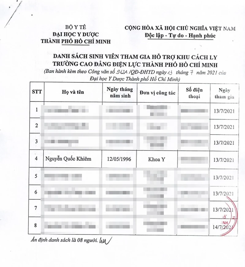 Danh sách có tên Khiêm được cử đi làm tình nguyện. Ảnh: PV