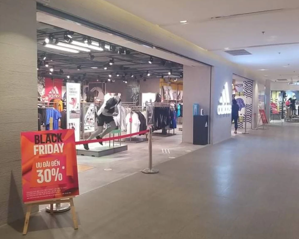 Gian hàng Adidas tại trung tâm thương mại Saigon Centre khá vắng vào buổi sáng 26-11. Người mua sắm cho biết họ chọn mua online thay vì tới cửa hàng vì lo ngại dịch bệnh.