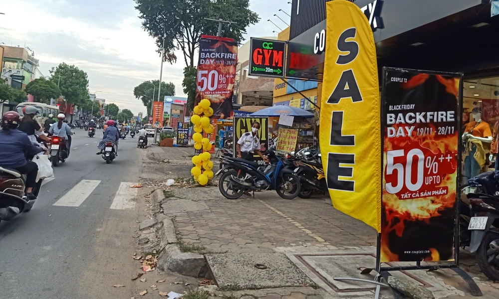 Theo ghi nhận của phóng viên, các cửa hàng thời trang dọc theo các con phố mua sắm ở TP.HCM như đường Quang Trung (Gò Vấp), Lê Văn Sĩ (quận 3), đường Nguyễn Huệ (quận 1)… vẫn vắng vẻ người mua sắm, dù các cửa hàng này đều treo biển giảm giá từ 30%-70% nhân ngày Black Friday.