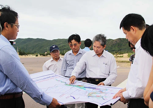 Lãnh đạo Tập đoàn Dầu khí Thái Lan và lãnh đạo tỉnh Bình Định khảo sát địa điểm xây dựng dự án tổ hợp lọc hóa dầu Nhơn Hội. Ảnh: CTV