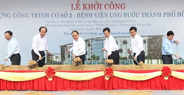 Ngân sách trung ương sẽ bổ sung cho TP.HCM 7.000 tỉ đồng để đầu tư một số dự án xã hội, trong đó có 3.200 tỉ đồng xây dựng bệnh viện tuyến cuối (ung bướu và nhi). Trong ảnh: Lễ khởi công xây dựng BV Ung bướu mới tại phường Tân Phú, quận 9, TP.HCM. Ảnh: HOÀNG GIANG