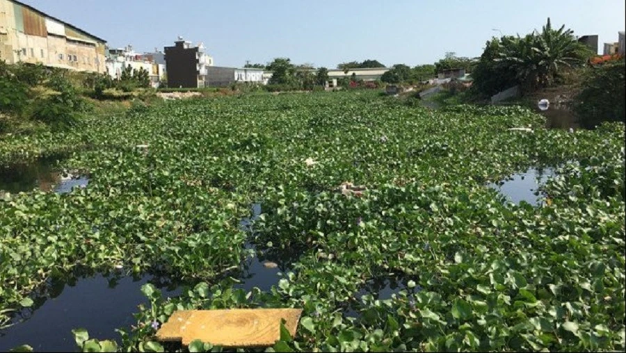 Năm 2020, kênh Vàm Thuận có rất nhiều lục bình và rác. Ảnh: A.P