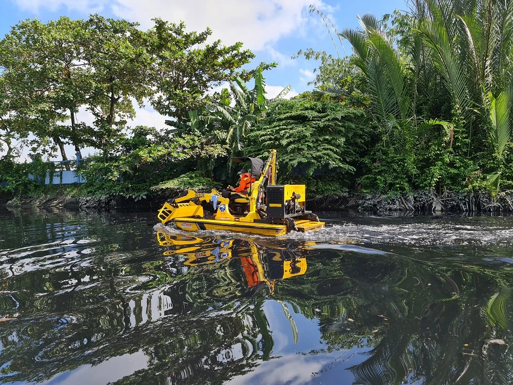 Thiết bị vớt rác trên sông Vàm Thuật - Trường Đai - Tham Lương. Ảnh: NGUYỄN CHÂU