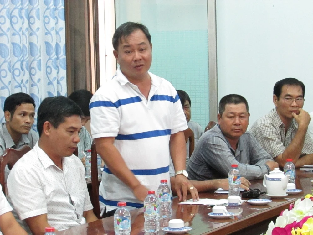 Đại diện một nhà xe ở quận Ô Môn phát biểu ý kiến tại buổi đối thoại về mức, phạm vi miễn giảm phí qua trạm T1 ngày 30-1. Ảnh: NN