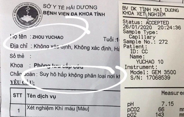 Qua chẩn đoán hình ảnh, hội chẩn, BV đa khoa tỉnh Hải Dương xác định bệnh nhân nhi Zhou Yuchao bị suy hô hấp, viêm phổi, có tiền sử suy thượng thận bẩm sinh, chưa loại trừ khả năng bị phù phổi. Bệnh nhân nghi nhiễm virus corona được chuyển tới điều trị tại BV Nhiệt đới Trung ương.