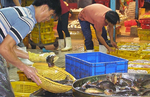Kinh doanh cá ở chợ đầu mối Bình Điền (TP.HCM). Ảnh: TRẦN NGỌC