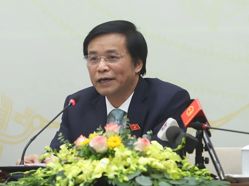 Tổng thư ký Quốc hội trao đổi với báo chí tại buổi họp báo. Ảnh: ĐỨC MINH