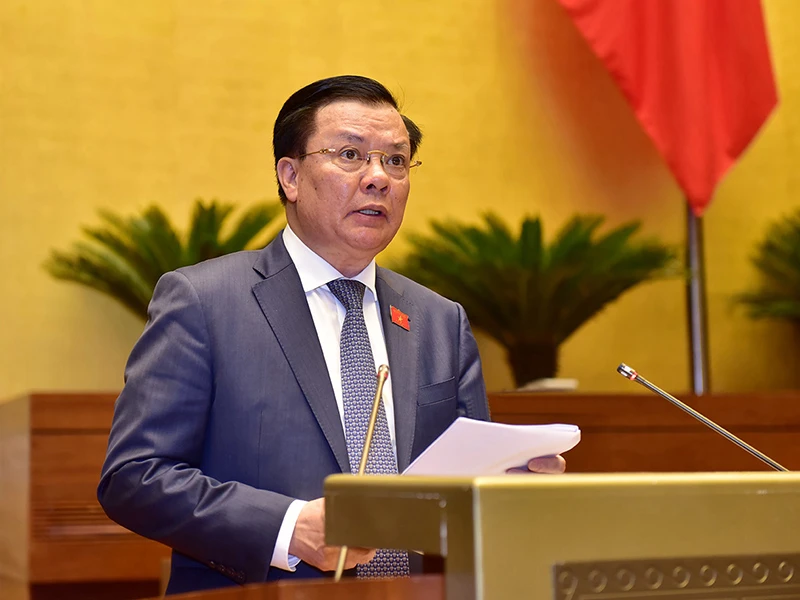 Bộ trưởng Bộ Tài chính Đinh Tiến Dũng tại cuộc họp ngày 11-6. Ảnh: Quochoi.vn