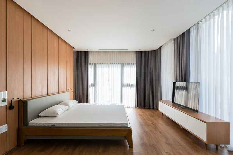 Phòng ngủ của từng thành viên đều được thiết kế tối giản từ nội thất cho đến màu sắc, hoa văn.