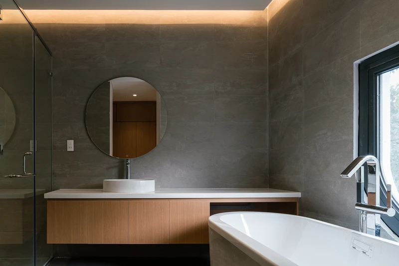 Phòng tắm mang phong cách hiện đại.