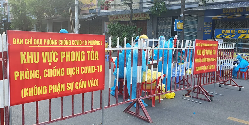 Phong tỏa một khu dân cư trên đường Trần Phú, TP Tuy Hòa. Ảnh: TẤN LỘC