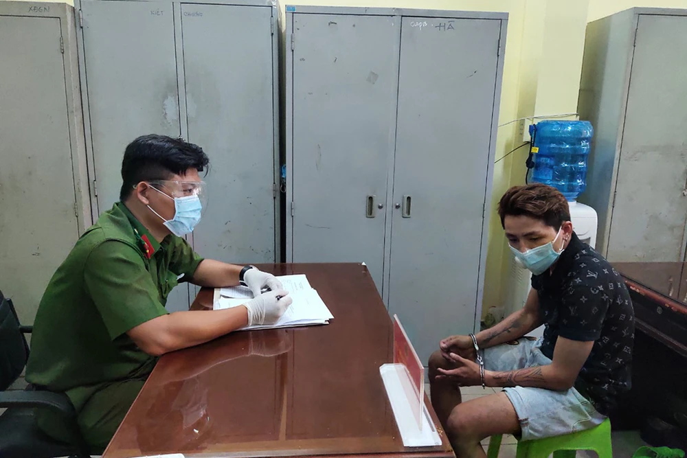 Công an lấy lời khai với Luân sau khi phát hiện người này tàng trữ ma túy. Ảnh KM