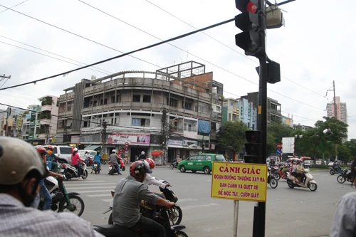 Treo biển cảnh báo "thường xuyên dàn cảnh quet xe cướp giật" ở một khu vực thuộcđịa bàn quận 5, TP HCM. (ảnh VnExpress)