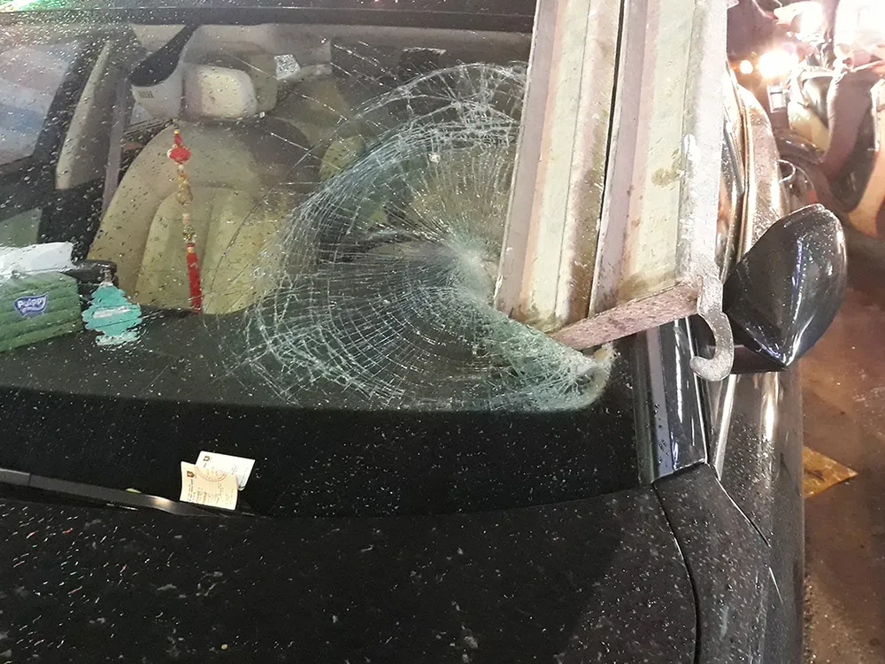 Sự cố khiến 2 xe ô tô biển số bị các kết cấu thép ở giàn giáo đè trúng, hư hỏng. Trong đó, một trong hai phương tiện bị thanh sắt đâm xuyên kính vào buồng lái. Hiện trường vương vãi khung thép, kính vỡ khiến giao thông qua khu vực ùn ứ.