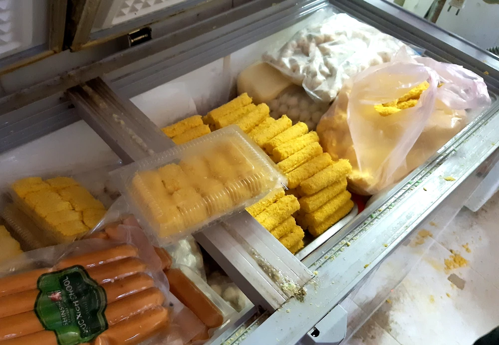 Tương tự, ngày 22-10, Phòng Y tế quận 11 phối hợp với UBND phường 14 kiểm tra cơ sở kinh doanh thực phẩm bao gói sẵn (cá viên, bò viên, tôm viên…) trên đường Âu Cơ (phường 14, quận 11).
