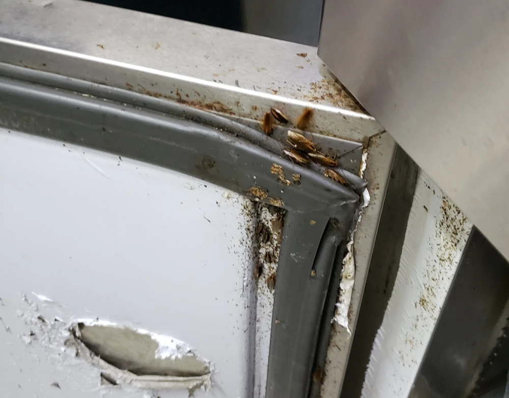 Tủ bảo quản thức ăn tại Công ty TNHH Thương mại S có nhiều gián. Ảnh: AT