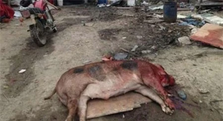Một con lợn trong đàn bị chém chết