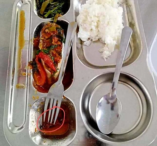 Suất ăn trưa có gián. Ảnh: NT