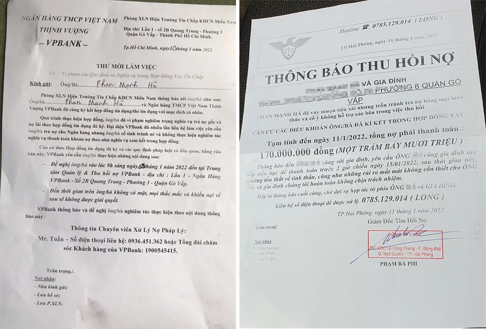 "Họ nói chồng cũ của tôi đã vay 70 triệu, sau một thời gian dịch bệnh không thanh toán nên hiện số tiền cả gốc cả lãi là 170 triệu đồng, ép tôi phải trả” – bà H nói và cho biết hai vợ chồng bà đã ly hôn sáu năm nay.