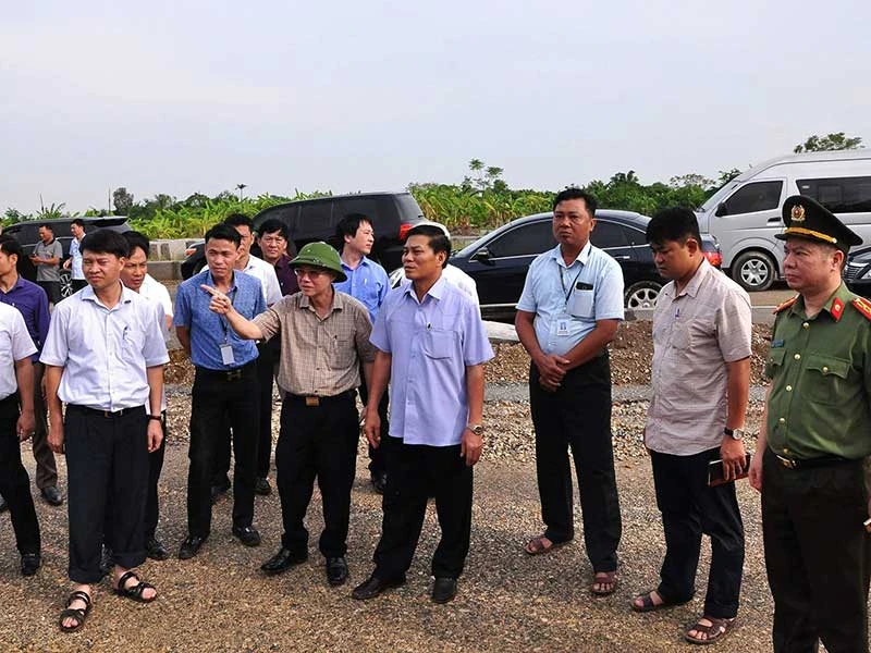 Chủ tịch TP Hải Phòng Nguyễn Văn Tùng (thứ tư từ phải qua) cùng đoàn công tác đi kiểm tra khu vực giang hồ chiếm đất chiều 3-10. Ảnh: ĐH