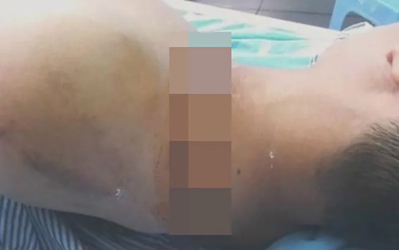 Một thanh niên trong nhóm đi ô tô rút dao chém vào vùng vai ngay gần cổ của Tuấn, một người khác trong nhóm đi ô tô đã rút ra một khẩu súng ngắn hướng về nhóm trong quán nổ hai phát súng.