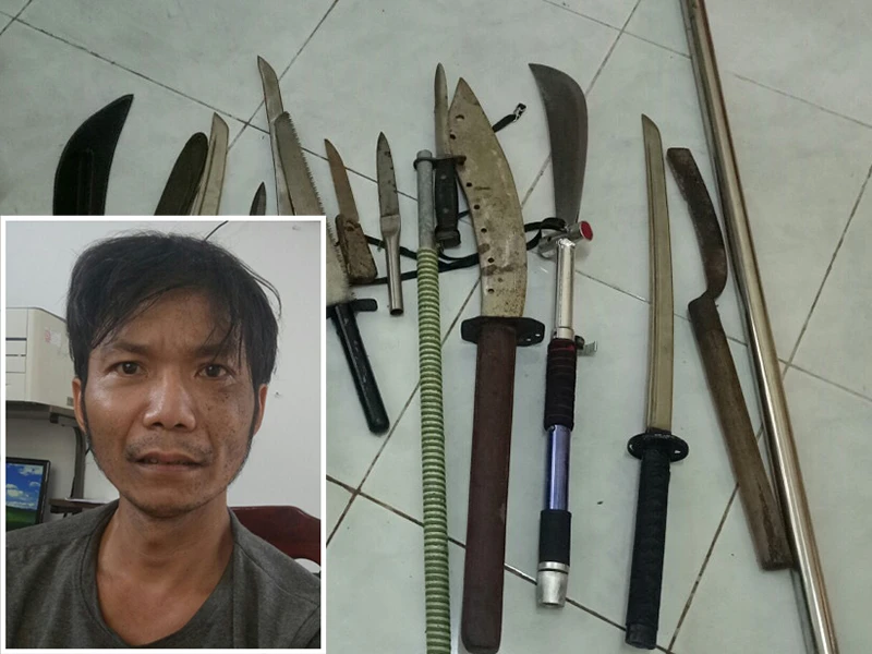Bị can Trần Tuấn Anh và hung khí công an thu giữ. Ảnh: HB