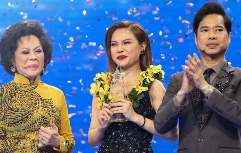 Giang Hồng Ngọc với chiếc cúp quán quân thứ ba trong sự nghiệp ca hát của mình