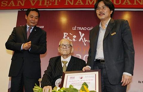 Nhà nghiên cứu Giang Quân nhận Giải thưởng lớn - Vì tình yêu Hà Nội. Ảnh: VT