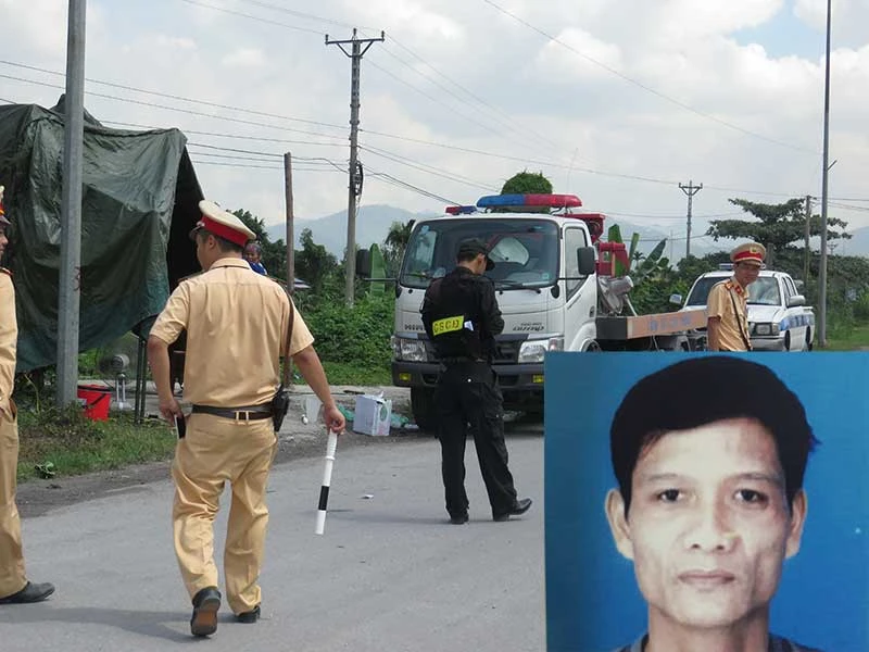 Công an lập chốt 24/24 giờ trên các tuyến đường truy bắt nghi can (ảnh nhỏ). Ảnh: HĐ