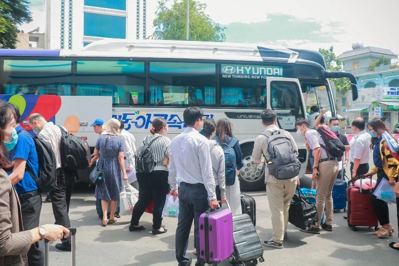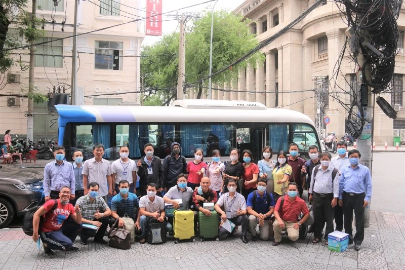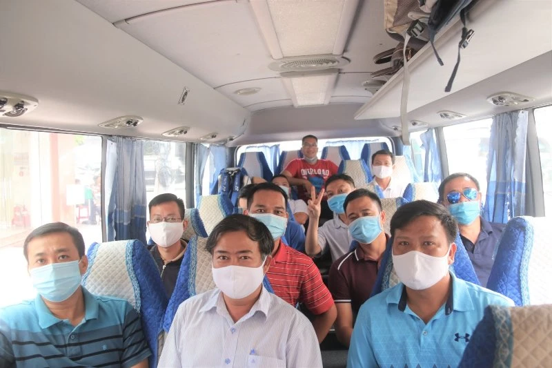 Đoàn công tác của trường ĐH Công nghiệp thực phẩm TP.HCM lên xe rời TP.HCM đi làm thi