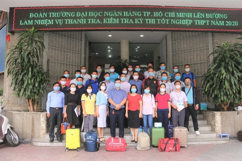 Tương tự, đoàn công tác gồm 25 cán bộ, giảng viên của Trường ĐH Ngân hàng TP.HCM hôm nay cũng đã lên xe đi làm nhiệm vụ thi tốt nghiệp THPT.