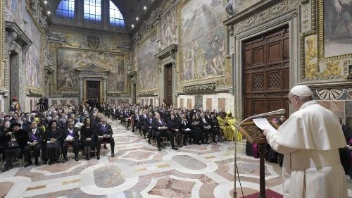 Giáo hoàng phát biểu trước toàn bộ các nhà ngoại giao tại Tòa thánh. Ảnh: VATICAN MEDIA