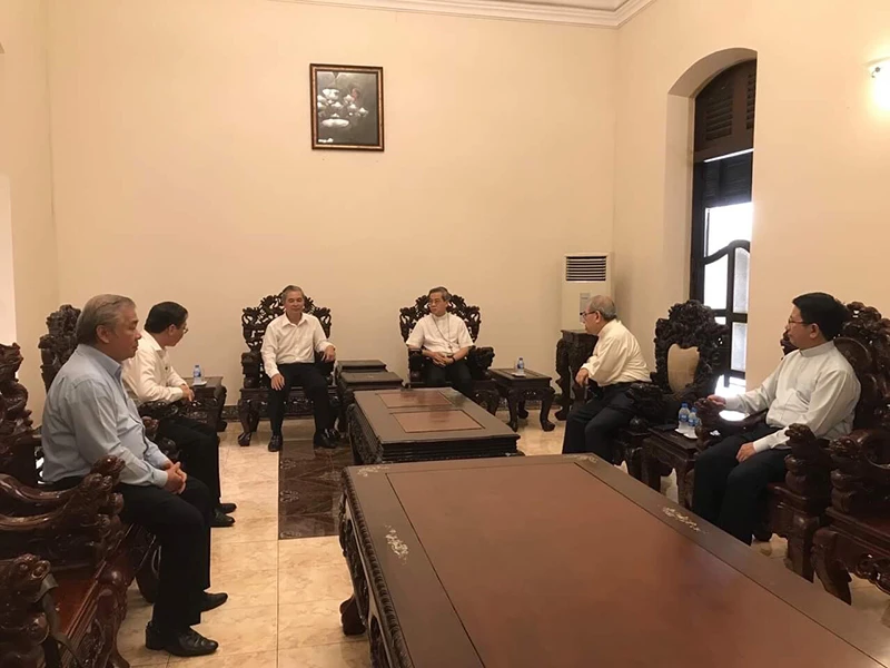 Lãnh đạo TP trong buổi gặp gỡ với Tổng Giám mục Tổng Giáo phận TP.HCM. Ảnh: HN