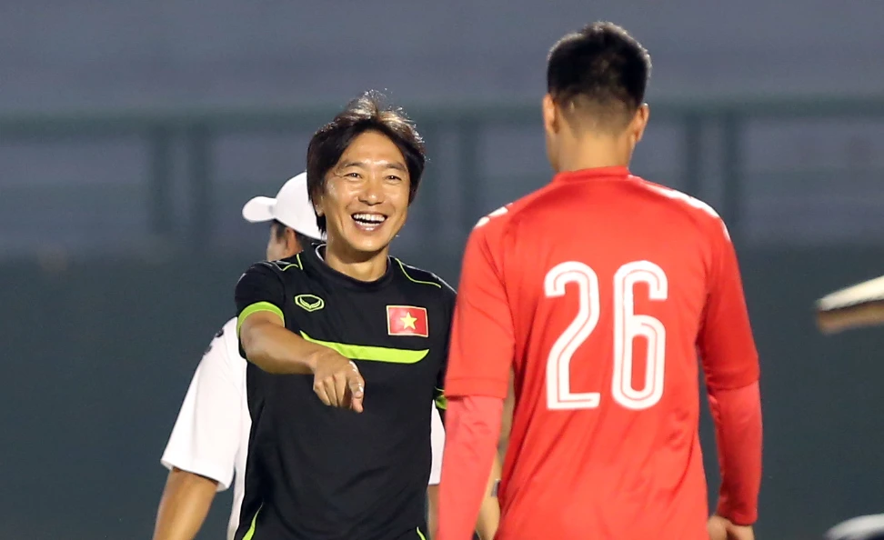 HLV Miura tỏ ra rất vui vẻ ở trận giao hữu này. Ảnh: ANH ĐỒNG