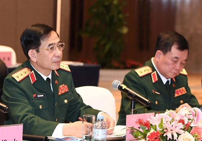 Thượng tướng Phan Văn Giang tại hội đàm. Ảnh: MOD