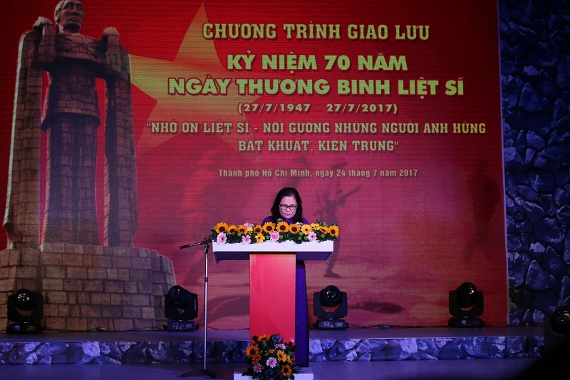 Thay mặt lãnh đạo thành phố, bà Nguyễn Thị Lệ, Ủy viên Ban Thường vụ, Trưởng ban dân vận Thành Uỷ cũng xúc động bày tỏ tình cảm của mình trong buổi giao lưu. Bà nhấn mạnh rằng, sự hy sinh to lớn của thế hệ cha anh không giấy mực nào tả xiết. “Ngày hôm nay, mọi người cùng tề tựu về đây để tri ân những người đồng đội, người cha, người chồng, người con, người mẹ,... đã nằm trong lòng đất mẹ. Thế hệ chúng ta, trong đó có bản thân tôi phải luôn nhớ mãi về một thế hệ đã từng ngã xuống để chúng ta có cuộc sống ngày hôm nay”, bà nói.