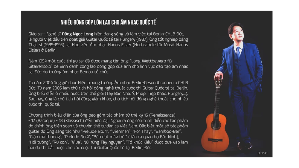 GS-NS Đặng Ngọc Long là một nhà nghiên cứu âm nhạc, một nghệ sĩ tài ba, một thầy giáo với đông đảo học trò “tây lẫn ta”, và hơn hết là người nghệ sĩ mang trên mình nhiều giải thưởng âm nhạc quốc tế cao quý.