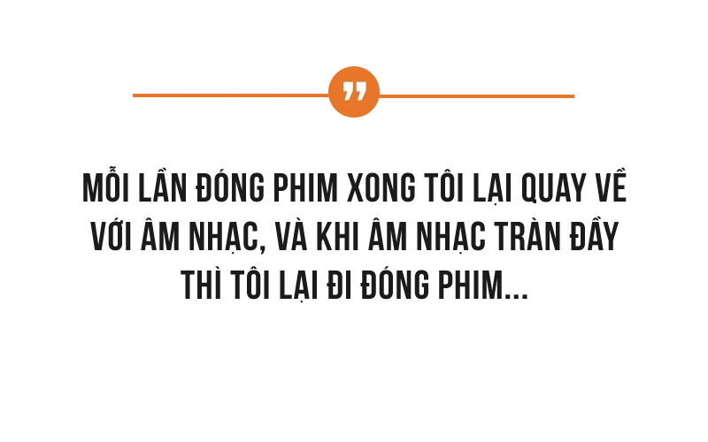 Mỗi lần đóng phim xong tôi lại quay về với âm nhạc, và khi âm nhạc tràn đầy thì tôi lại đi đóng phim. Sự thay đổi công việc kiểu này (mặc dù vẫn là đi làm) nhưng nó cho tôi một không khí thư giãn về tinh thần rất nhiều, tôi cảm thấy thích thú và không có cảm giác mệt mỏi gì nữa.