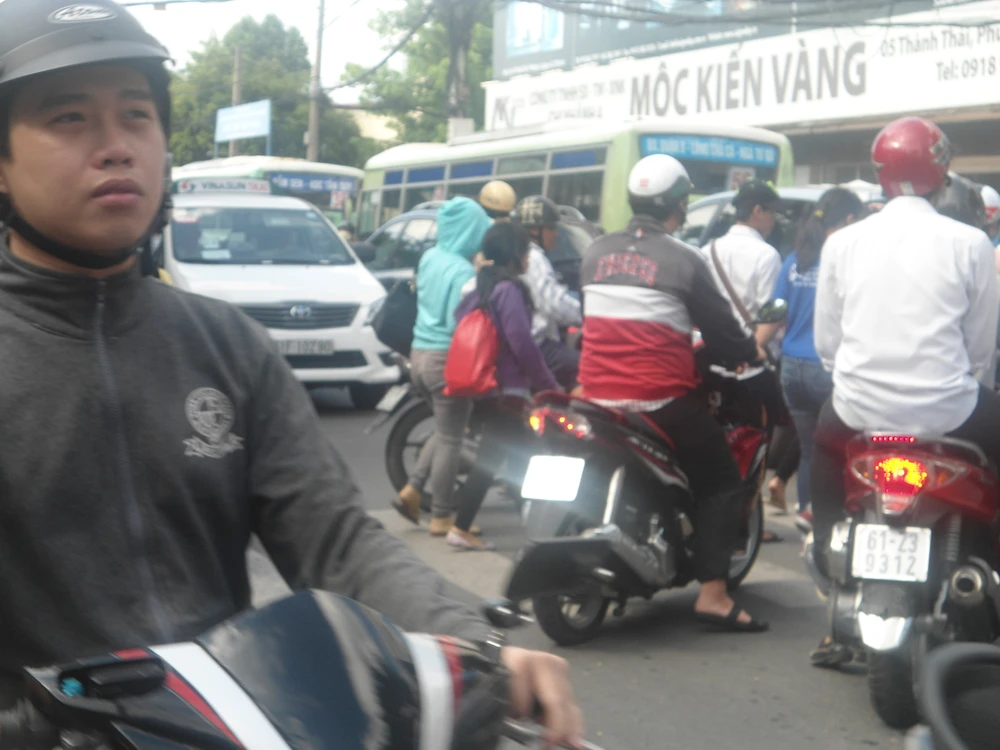 Giao thông bị trì trệ trên đoạn đường Thành Thái, đoạn từ THPT Nguyễn Khuyến đến THPT Diên Hồng Quận 10